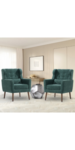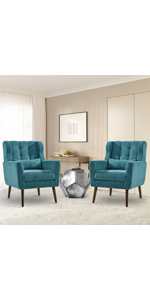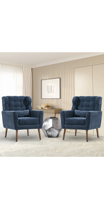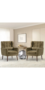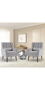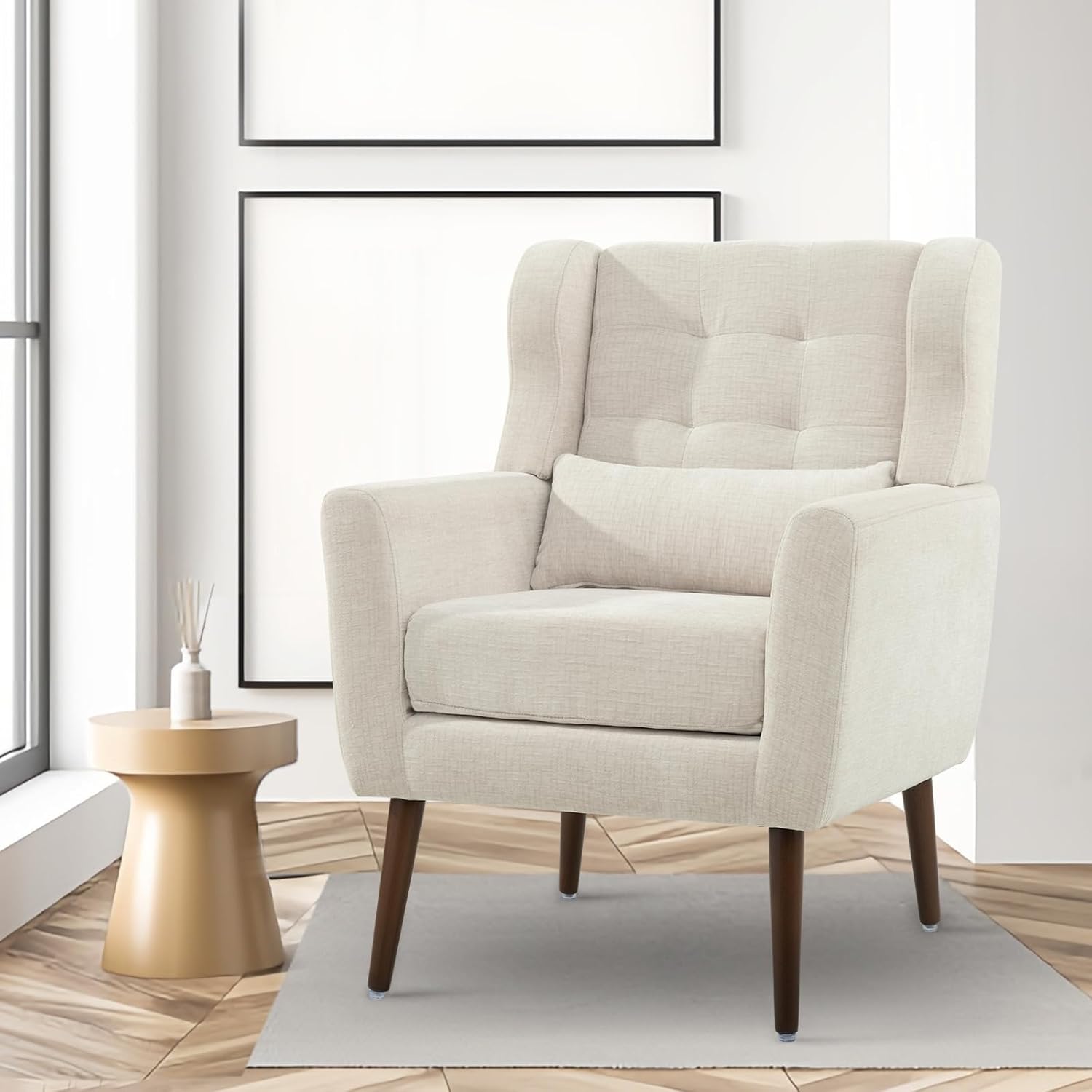 Accent Chairs Set of 2 for Living Room, Chenille Upholstered Mordern Armchair, Comfy Soft Padded Lounge Reading Arm Chair in Small Space, Bedroom, Pillow, Solid Wood Leg, Beige