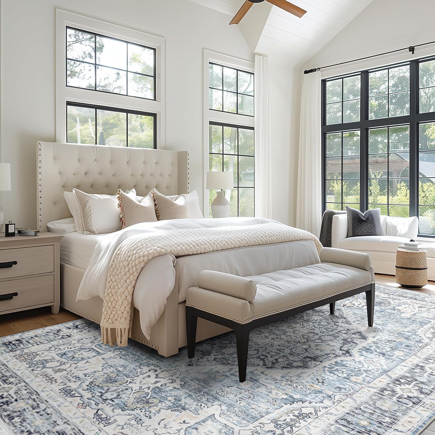 Area Rug 5×7, Vintage Boho Rug,Ultra-Soft Low Pile, Washable, Non Slip,Stain Resistant Printed Carpet for Living Room Bedrooms Playroom Office Kitchen, Light Blue