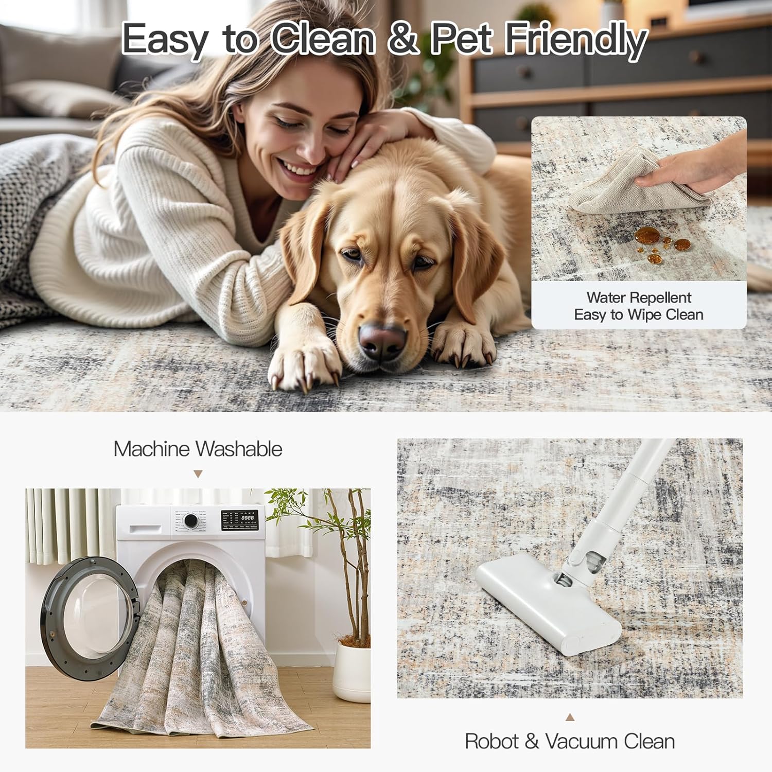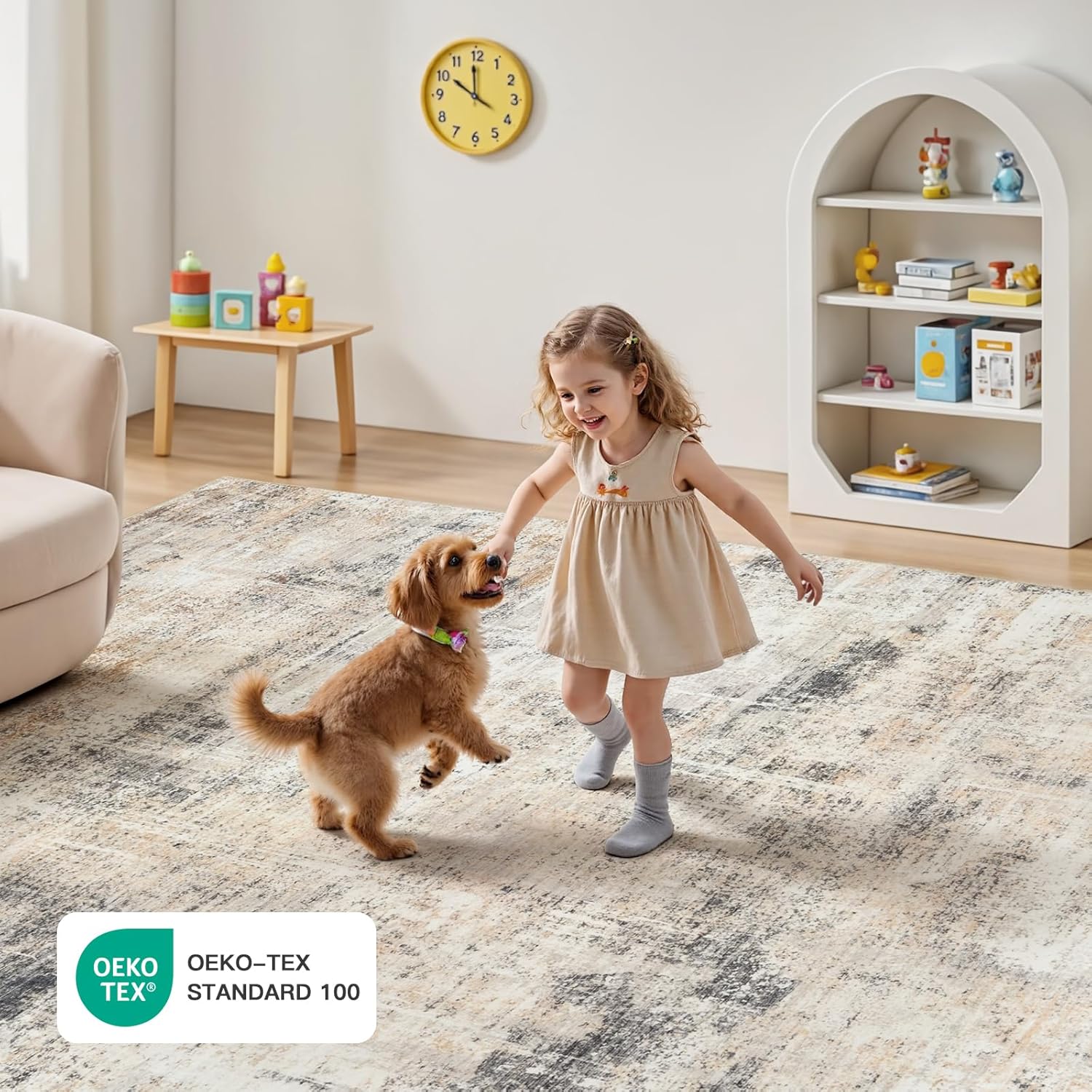 Lofus 8x10 Area Rug for Living Room, Gold Abstract Large Rugs with Non-Slip Backing, Neutral Modern Washable Carpet for Bedroom Dining Room Home Office Nursery Indoor