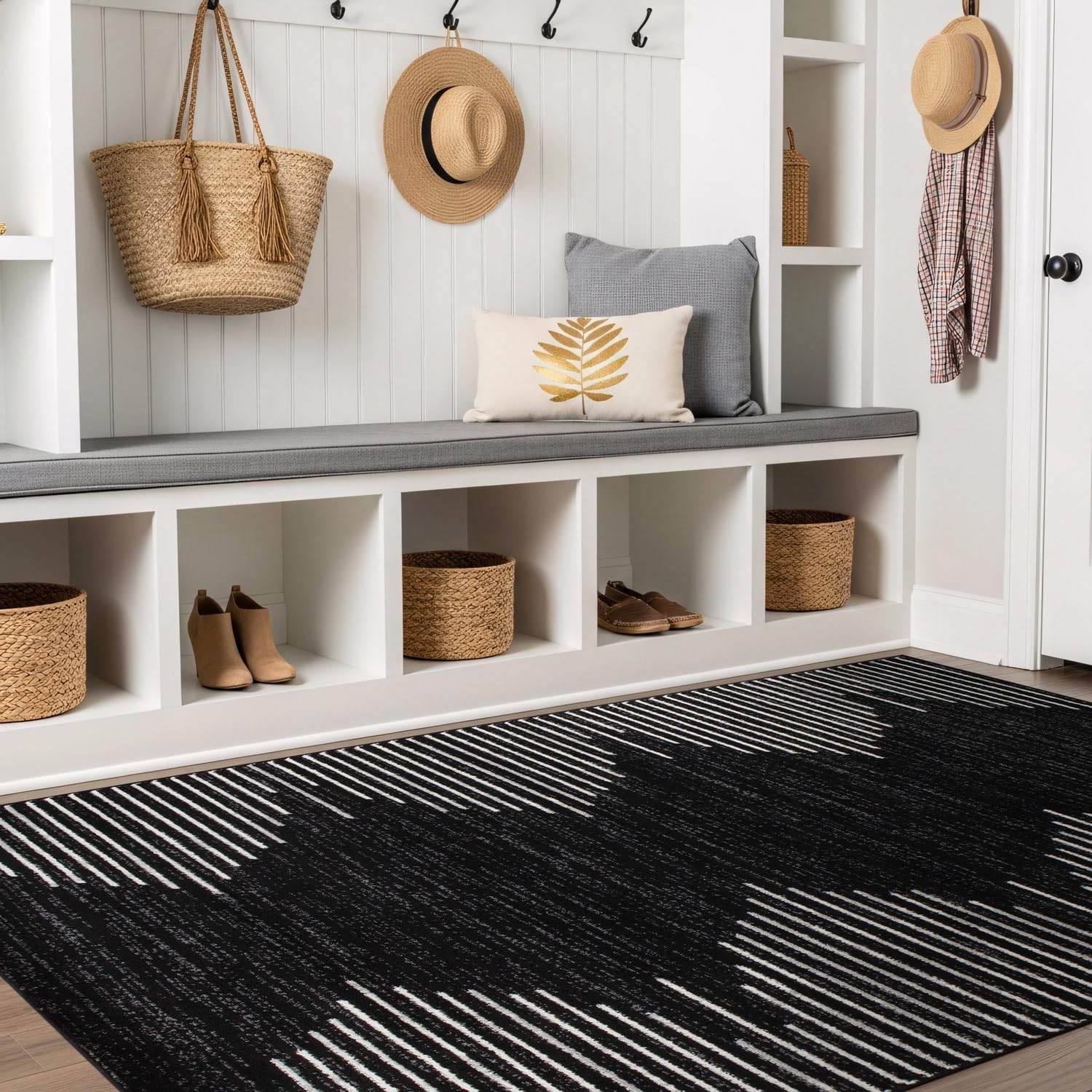 Rugshop Bohemian Stripe Stain Resistant High Traffic Living Room Kitchen Bedroom Dining Home Office Area Rug 5' x 7' Black