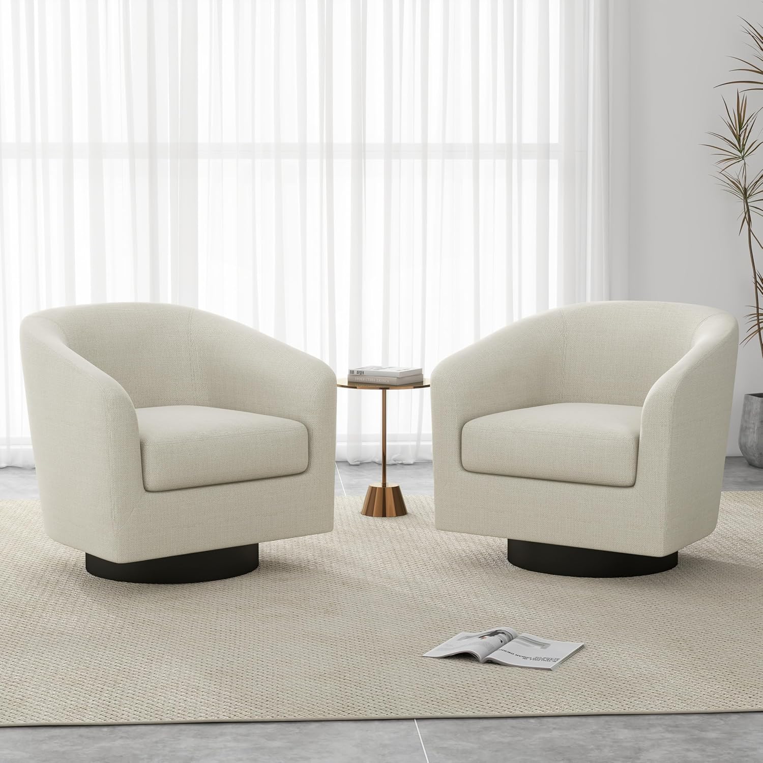 UIXE Swivel Barrel Accent Chairs Set of 2, Modern Round Club Arm Chair Upholstered Living Room Armchair, Single Sofa Seating Bedroom Side Reading Seat in Fabric for Home Office (Beige)
